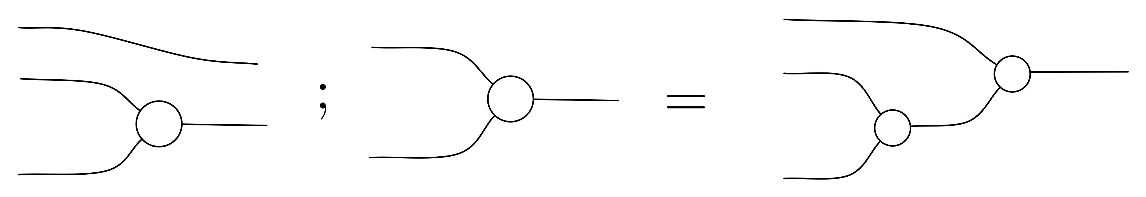 and—using the associativity property of addition—no matter what three numbers we feed in along the wires on the left, the result will be the same. In other words, the two diagrams in (Assoc) have the same behaviour.