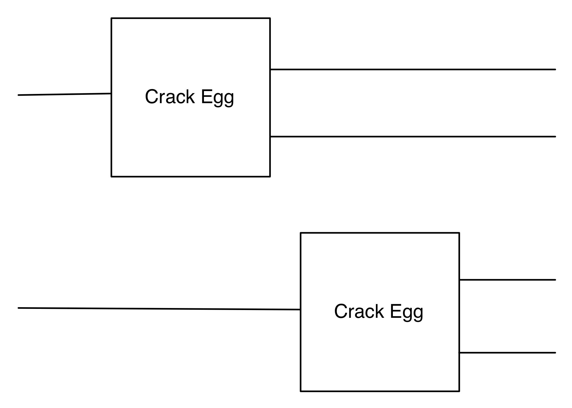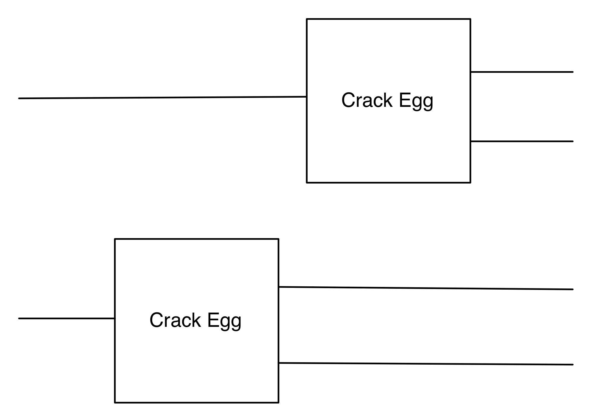 There are two things to say here. Let’s start by thinking about the part of the recipe where we crack the eggs.
