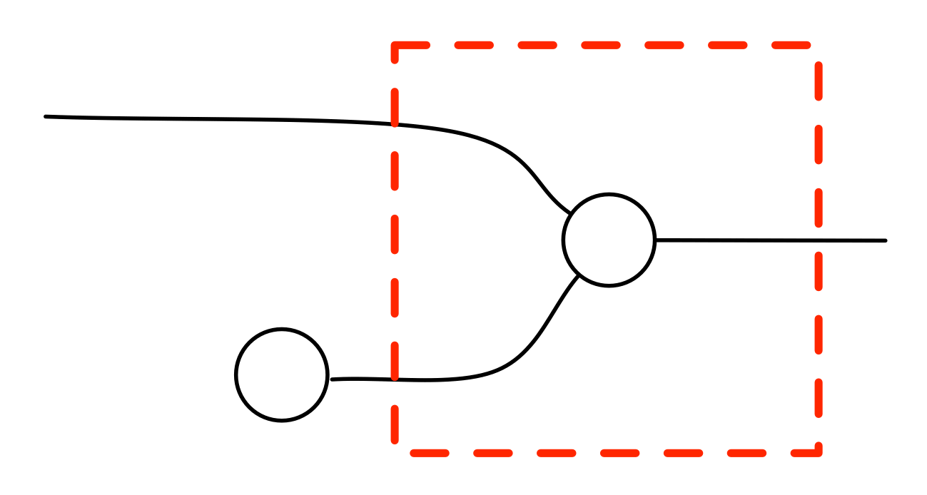 There is an intuitive way to think about the equality above: imagine starting with the left hand side and pulling on the wires until they are tight. Since we are in the beautiful world of graphical linear algebra and not in the hideous world of the back of your TV, the wires do not get tangled. We end up with the diagram on the right hand side.