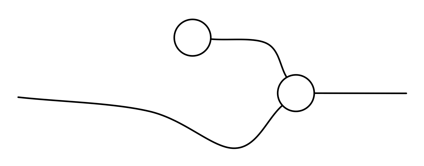 The diagram that we disowned is actually quite interesting: the result of the addition is “fed back” as the first argument. Feedback is extremely important in computer science, control theory and engineering. It has launched a thousand papers. Graphical linear algebra has some interesting things to say about feedback too, as we will see.