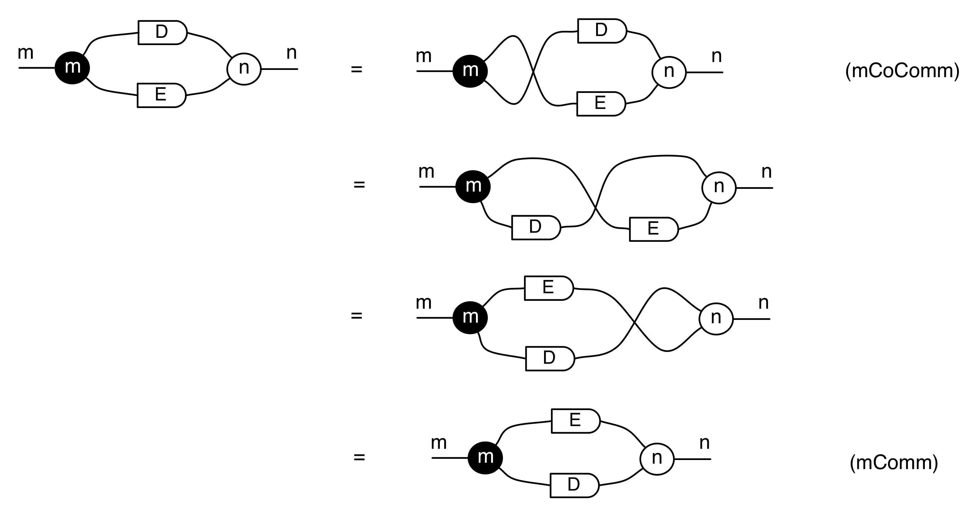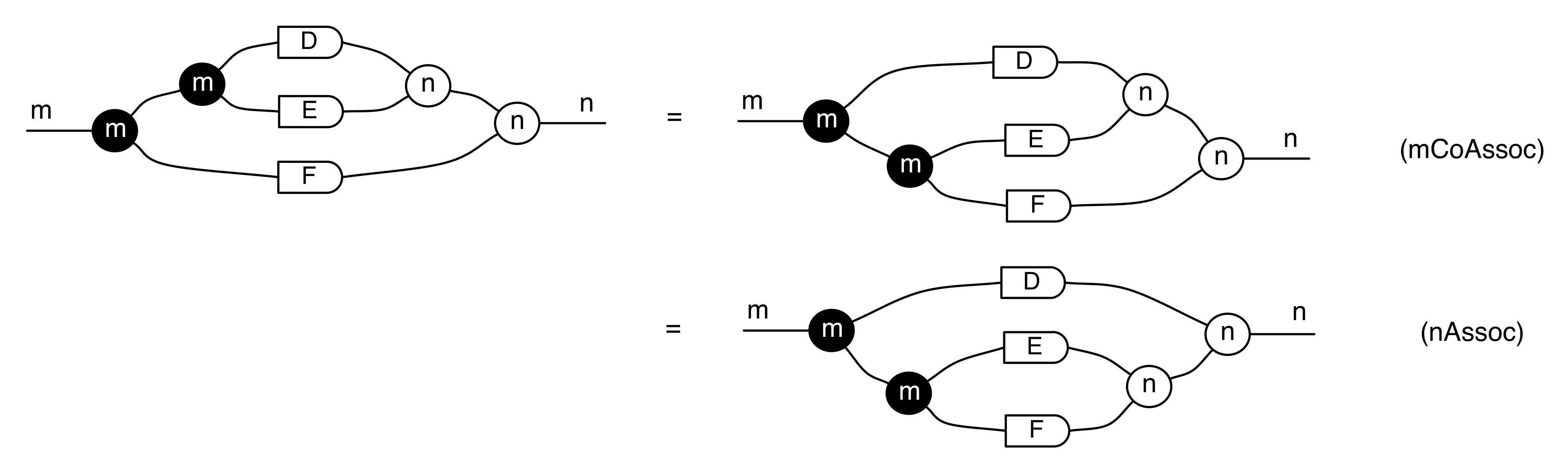 Next, Fibonchi proved that these sugars satisfied a very pleasing property with respect to arbitrary diagrams. For example, given any diagram D with m dangling wires on the left and n dangling wires on the right, the following is true: