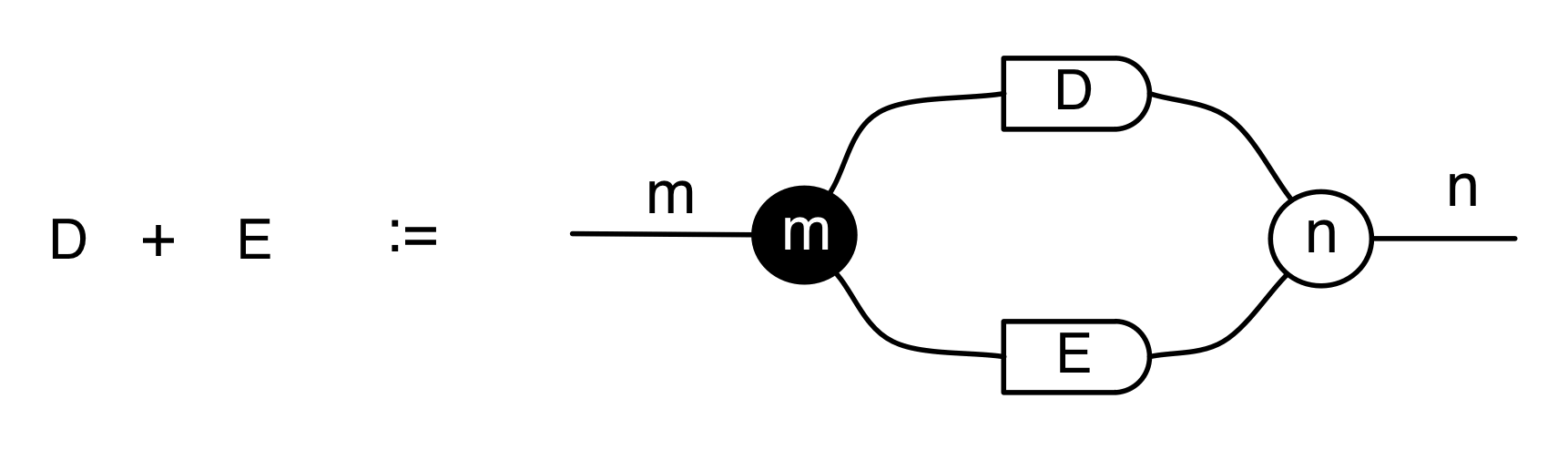 These properties intrigued Fibonchi, and he went ahead and defined an operation on compatible diagrams—those that agreed in their respective numbers of dangling wires on the left and right. He called the operation sum. This operation would be rediscovered in different notation a few centuries later and given the name matrix addition.