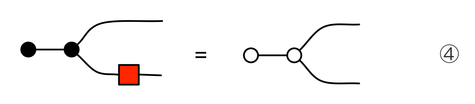 Back in Episode 16, when we were proving that a diagram in B is really the same thing as a matrix of natural numbers, we argued that diagrams in B can be factorised so that all the comonoid structure comes first, then the monoid structure: doing this made our diagrams look a lot like matrices. In F, the theory of special Frobenius monoids, the opposite thing is true: any diagram can be factorised so that all the monoid structure comes first, followed by all the comonoid stuff.