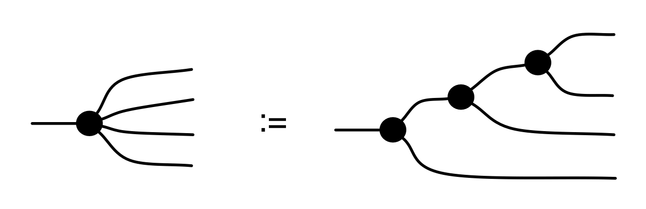 For the rest of this section, to stop the proliferation of the digit 2 that clutters the diagrams, we will just draw the 2 wire using a thicker line, like so: